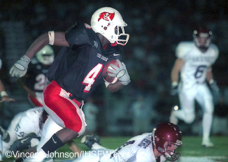 Porters/Christensen Open Flood Gates Bolingbrook - Jake Christensen connected seven times for touchdowns in a 48-28 victory against Bolingbrook, helping Lockport wash away any chances of a Raiders victory Friday night The Lockport Township team made a short trip across the waterway that helped give the school it's mascot name, for a non-confernce game against it's neighbor Bolingbrook. While the real locks stayed shut Friday night, anyone who attended the game may have thought Lockport opened up both of the gates to flush out all the Raider fans. While the new Bolingbrook Stadium may have been overflowing at the start of the game, the home stands were almost bare at the onset of the 4th quarter as the 2003 8A State Champs followed their quarterback's arm into the endzone seven times to crash the party for the Brooks first ever game at their new field. While Bolingbrook would keep things close during the first half, matching up nicely with the Porters, their speedy receivers & defensive backs, plus quarterback Javon Stewart (5'7 160 jr.), they fell behind almost as quickly as they looked like they might pull ahead. Lockport would be the first to get on the board. Doing everything right during it's first drive. As Christensen found Zach Lammers on the very first play from scrimmage for a 40 plus yard reception, to put them close to the red zone. Christensen looked like a man on a mission as he took the ball himself on a 4th & 1 play at the 14 to keep Lockport's scoring chances alive on it's first drive. Which would lead to a Chris Keyser touchdown as the back found his way into the endzone on a 10 yard reception. While the Raiders would come marching right back, showing their speed as Kevin Lepitre burned everyone and would almost take the kickoff back 90 something yards, if it wasn't for his big toe stepping out at the 44 of Bolingbrook. Lepitre would find the endzone soon afterwards though, on what should have been a Dominique Collins touchdown. As a possible sign of things to come, Collins would have the Raiders' first fumble of the night, but would wind up celebrating as Lepitre recovered it in the endzone for a score. The Raiders missed PAT would put them as close as they would come to Lockport for the rest of the night though. While at times through the first half the outstanding athleticism of Bolingbrook helped slow down the Porter attack and make Christensen look off balance, breakdowns on defense, compiled with some key fumbles & penalties on offense cost Bolingbrook a victory. Bolingbrook head coach John Ivlow, may have summed up his teams loss best "With this game as close as it was, we committed some terrible, terrible mistake." Asked if the Christensen's performance or the teams fumble & penalty woes in the game were the difference between the team being 0-2 as opposed to 1-1 he stated "It was again us". He was quick to add that although he's had to admit that two weeks in a row "I'm proud of this team & we are going to be a good football team...you've got to play these teams to go & play the 3rd & 4th weekend in the playoffs" refering to last weeks opponentPark Ridge (Maine South). Rich Bonko, George Kadlec & Jay Bradarich all had two receiving TDs a piece for Lockport. While Lepitre would have Bolingbrook's only scores while the starters for both teams where still on the field. by Vincent Johnson